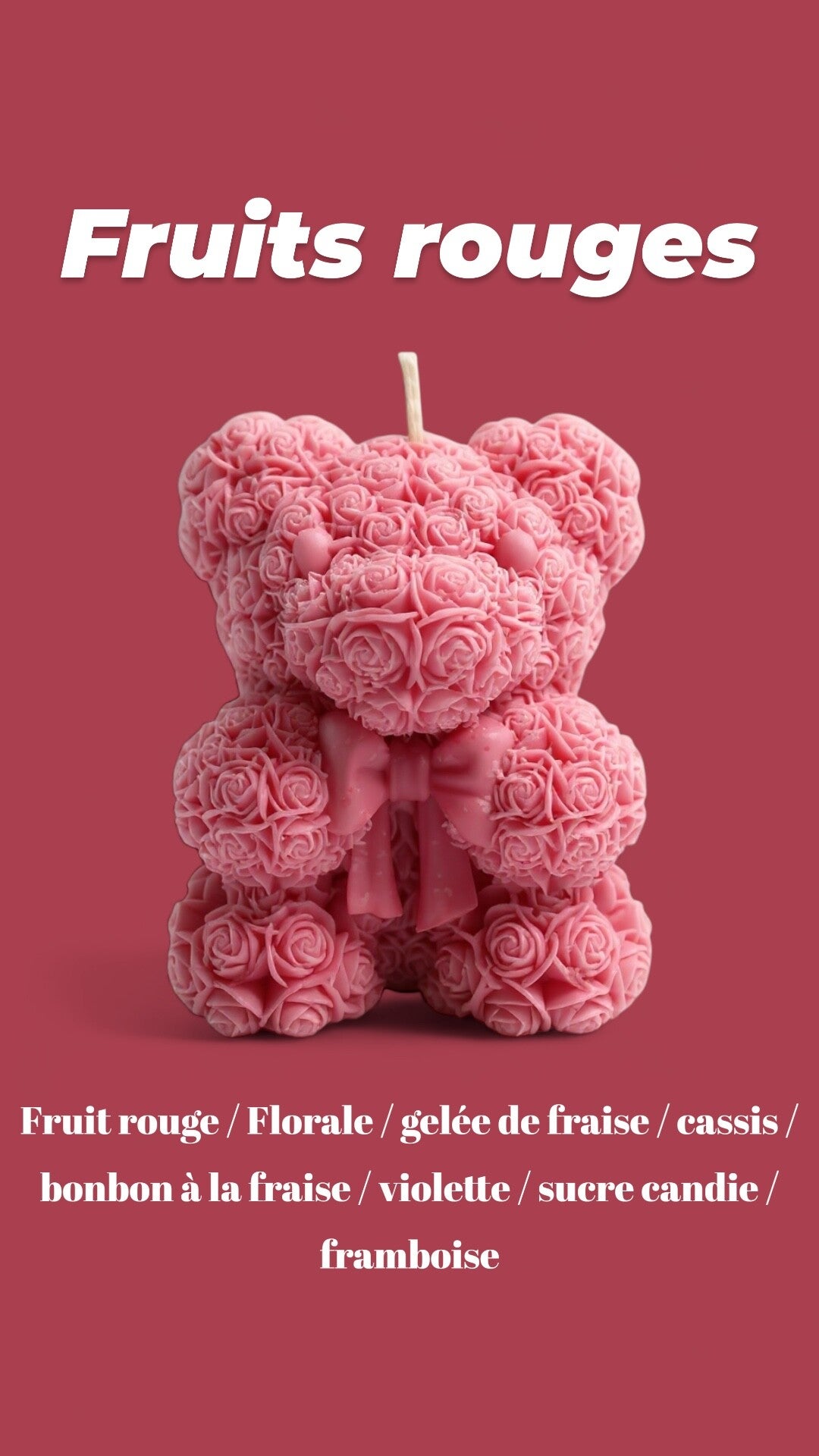 - Le fond est composé de sucre candi et de framboise, concluant le parfum sur une note intensément gourmande et fruitée. Le sucre candi apporte une sensation cristalline et croustillante, tandis que la framboise, avec sa saveur sucrée et légèrement acidulée, ajoute une fraîcheur durable et une touche de complexité qui enrobe la fragrance dans une finale délicieuse et mémorable.